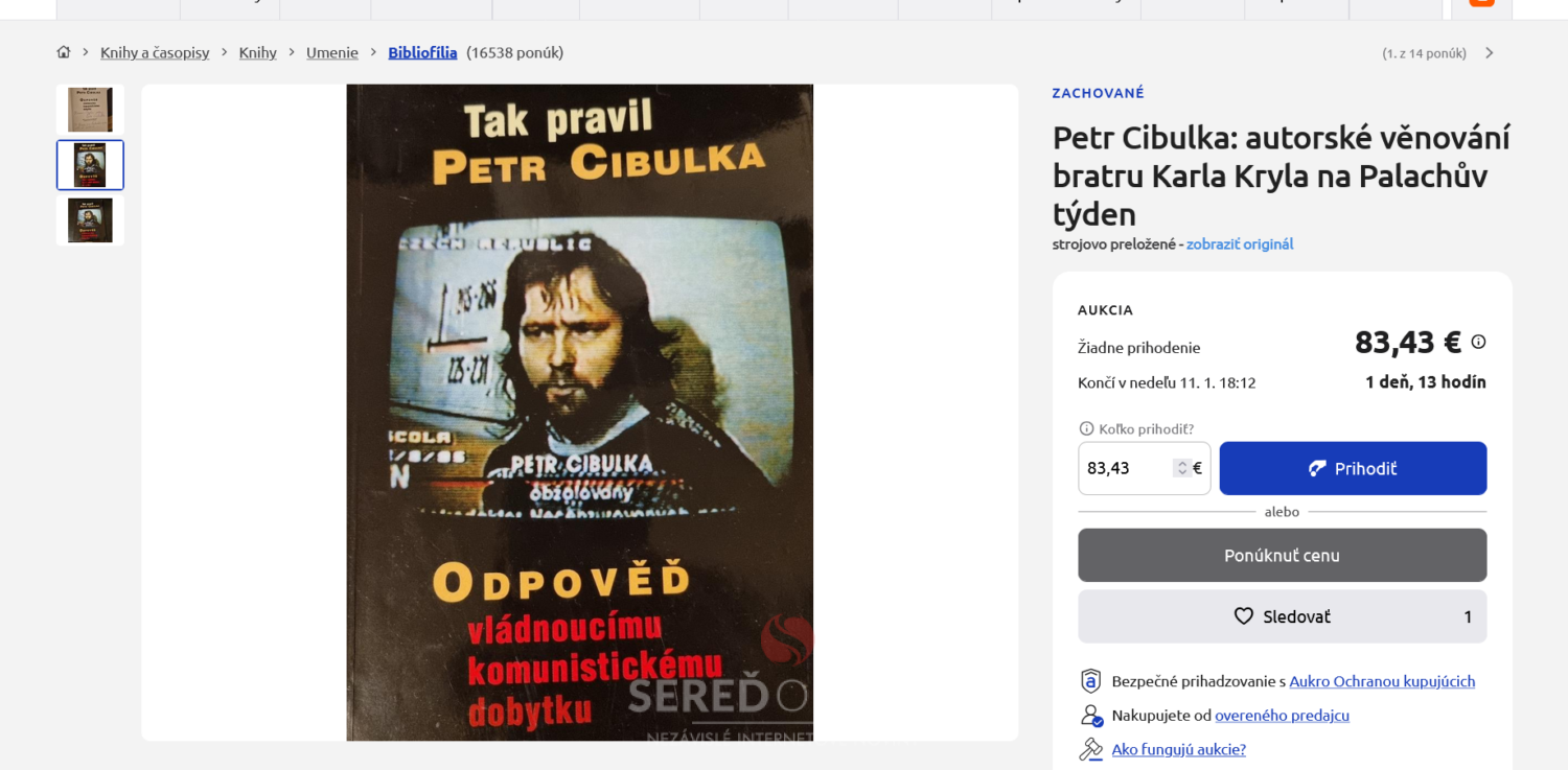 Aj kniha napísaná Petrom Cibulkom s venovaním získava na hodnote, nakoľko ich je zachovaných stále menej a v dobrej kvalite naozaj minimum.