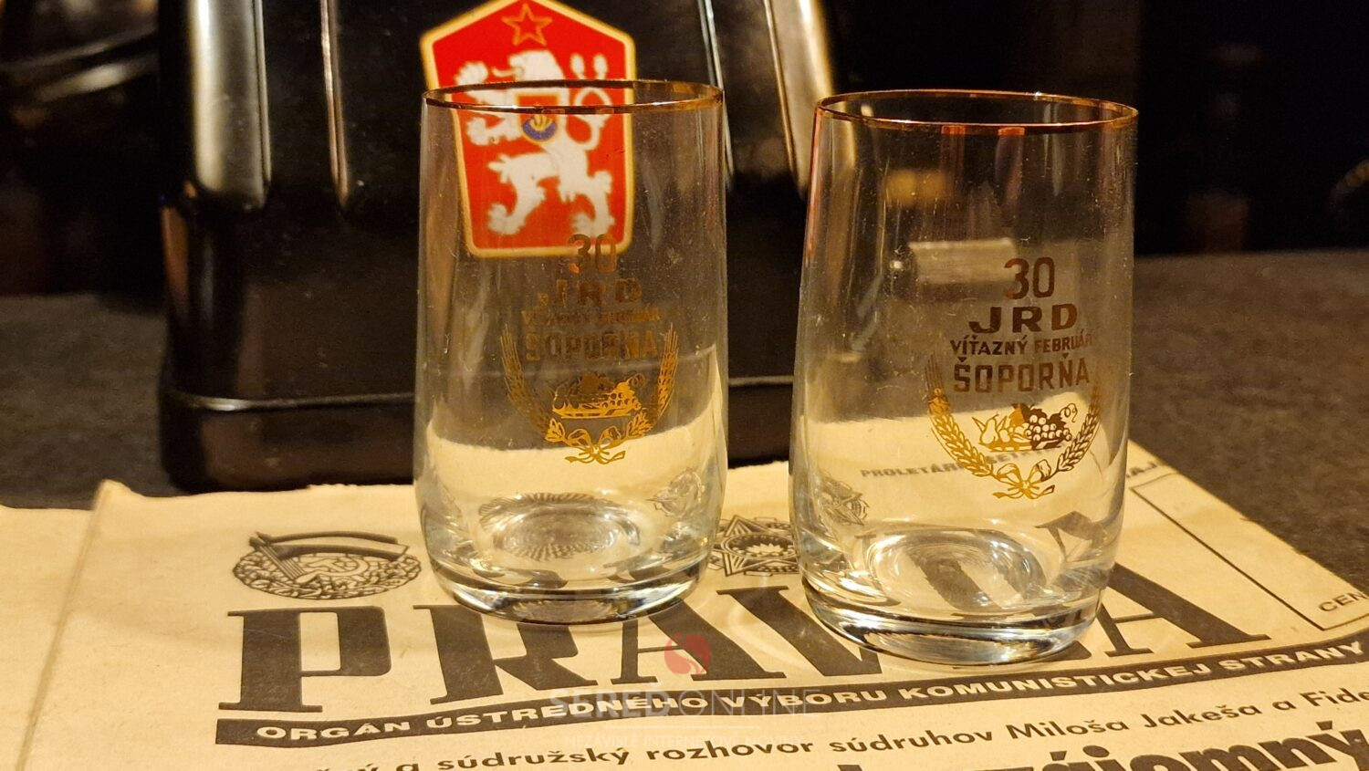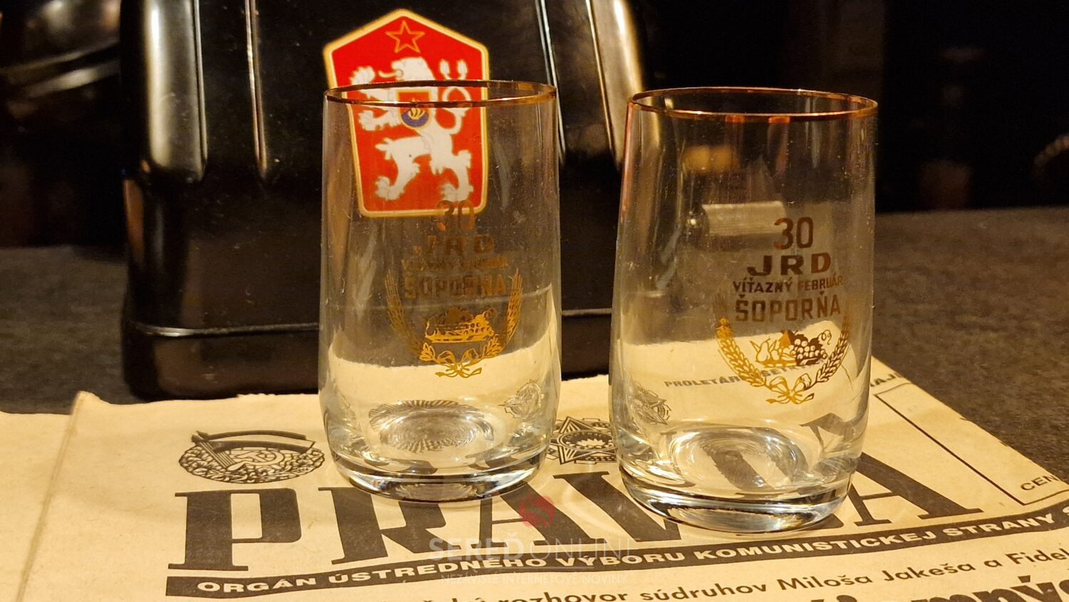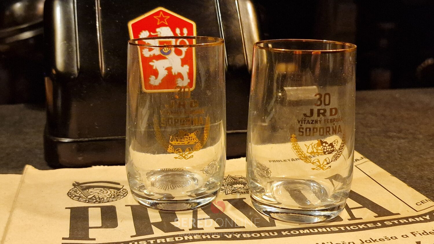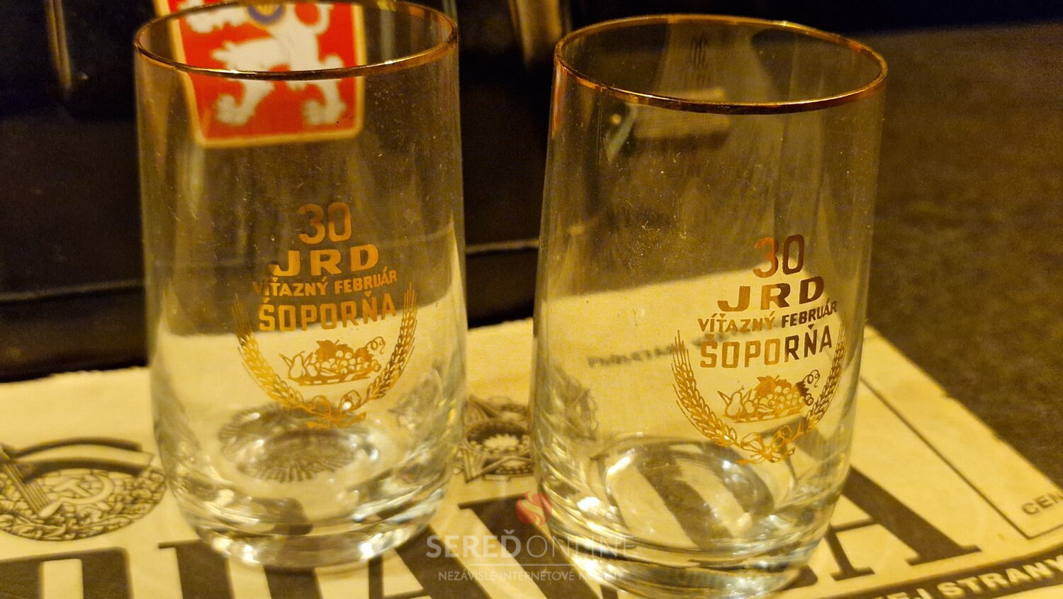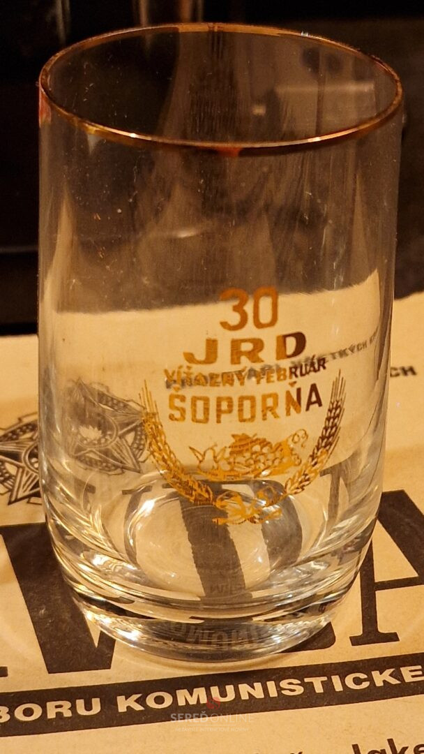 Poháriky vyhotovené k 30. výročiu JRD Víťazný február v Šoporni, sme do expozície Múzea totality získali od darcu Jozefa zo Šoporne.