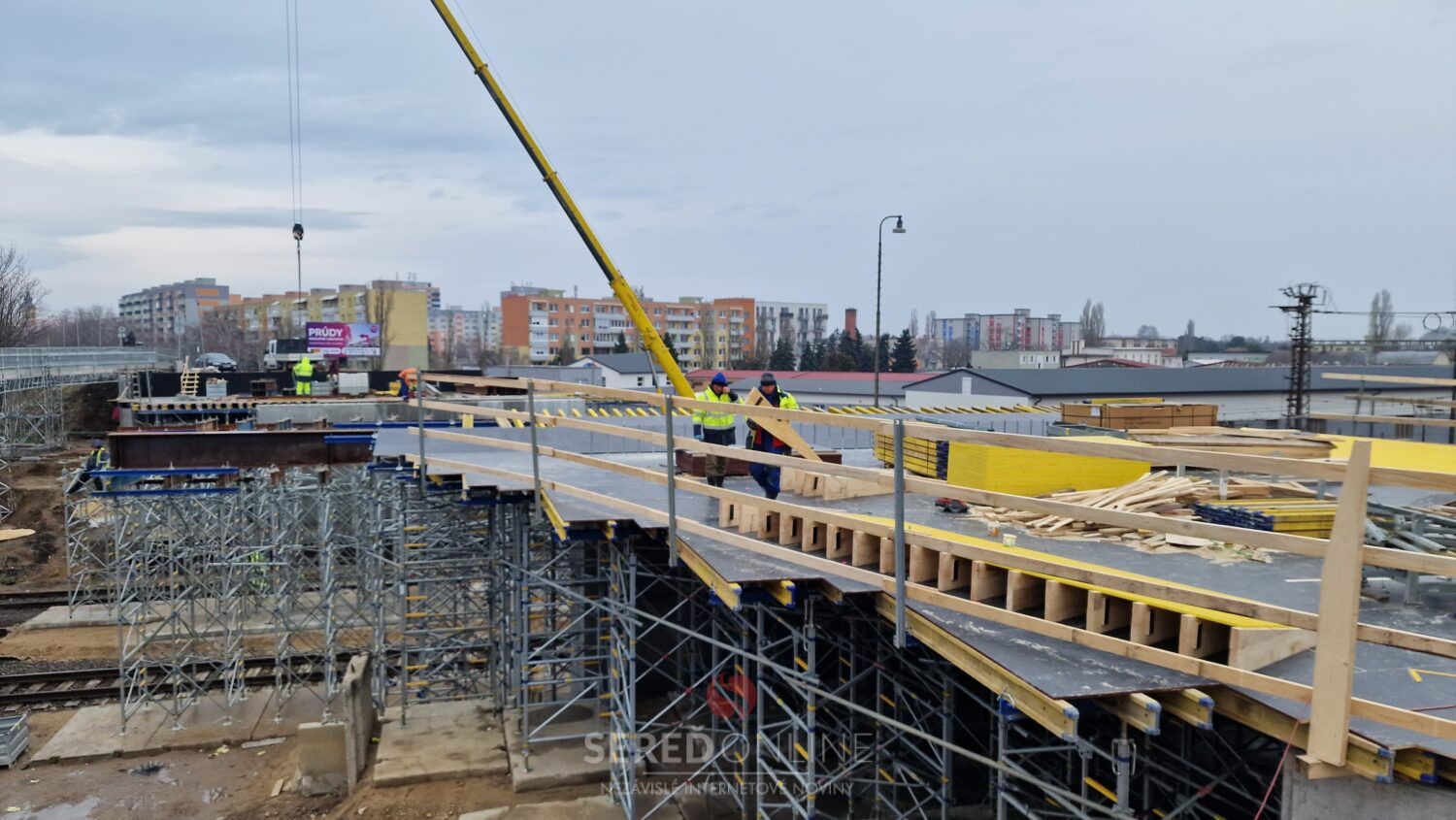 Stav na stavenisku denne vidí aj bežný občan z núdze využívajúci provizórnu lávku na presun z jednej časti mesta do druhej.