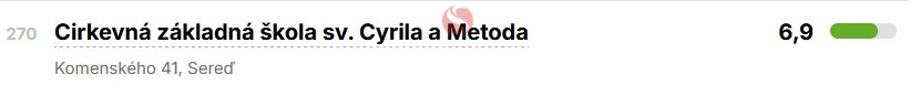 Cirkevná základná škola sv. Cyrila a Metoda sa umiestnila na 270. mieste zo 775 hodnotených základných škôl v celoslovenskom meradle, z toho zároveň na 22. mieste z 80 základných škôl v Trnavskom kraji.