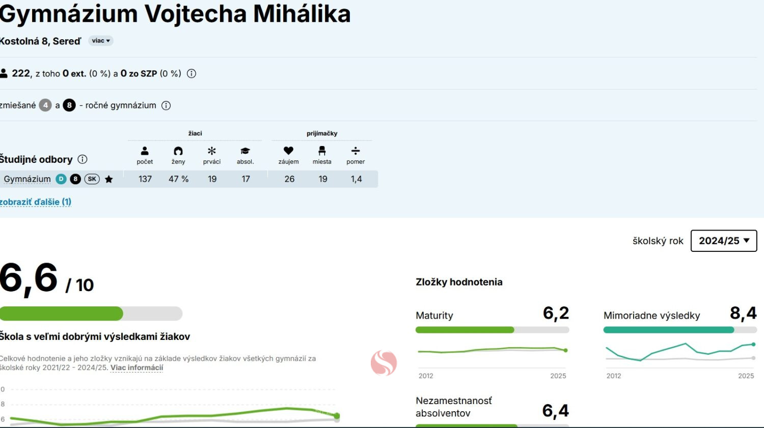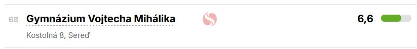 Gymnázium Vojtecha Mihálika Sereď sa umiestnilo na 68. mieste zo 175 hodnotených gymnázií v celoslovenskom meradle, z toho zároveň na 8. mieste z 19 gymnázií v Trnavskom kraji.