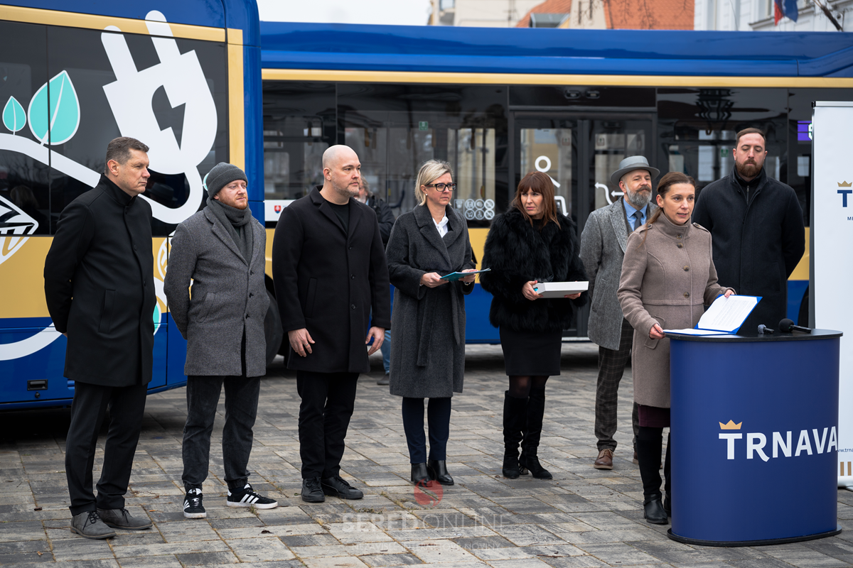 Mesto Trnava | Mesto Trnava a spoločnosť ARRIVA dňa 28.1.2026 na Námestí SNP predstavili verejnosti nové elektrobusy, ktoré budú slúžiť na obsluhu liniek MHD. Flotila 17 bezemisných vozidiel najnovšej generácie bude tvoriť až polovicu vozidlového parku zabezpečujúceho dopravu pre obyvateľov a návštevníkov mesta. Na nákup nízkopodlažných autobusov na elektrický pohon s príslušenstvom a vybudovanie potrebnej nabíjacej infraštruktúry získal dopravca vďaka podpore mesta nenávratný finančný príspevok vo výške takmer 12 miliónov eur z Programu Slovensko.