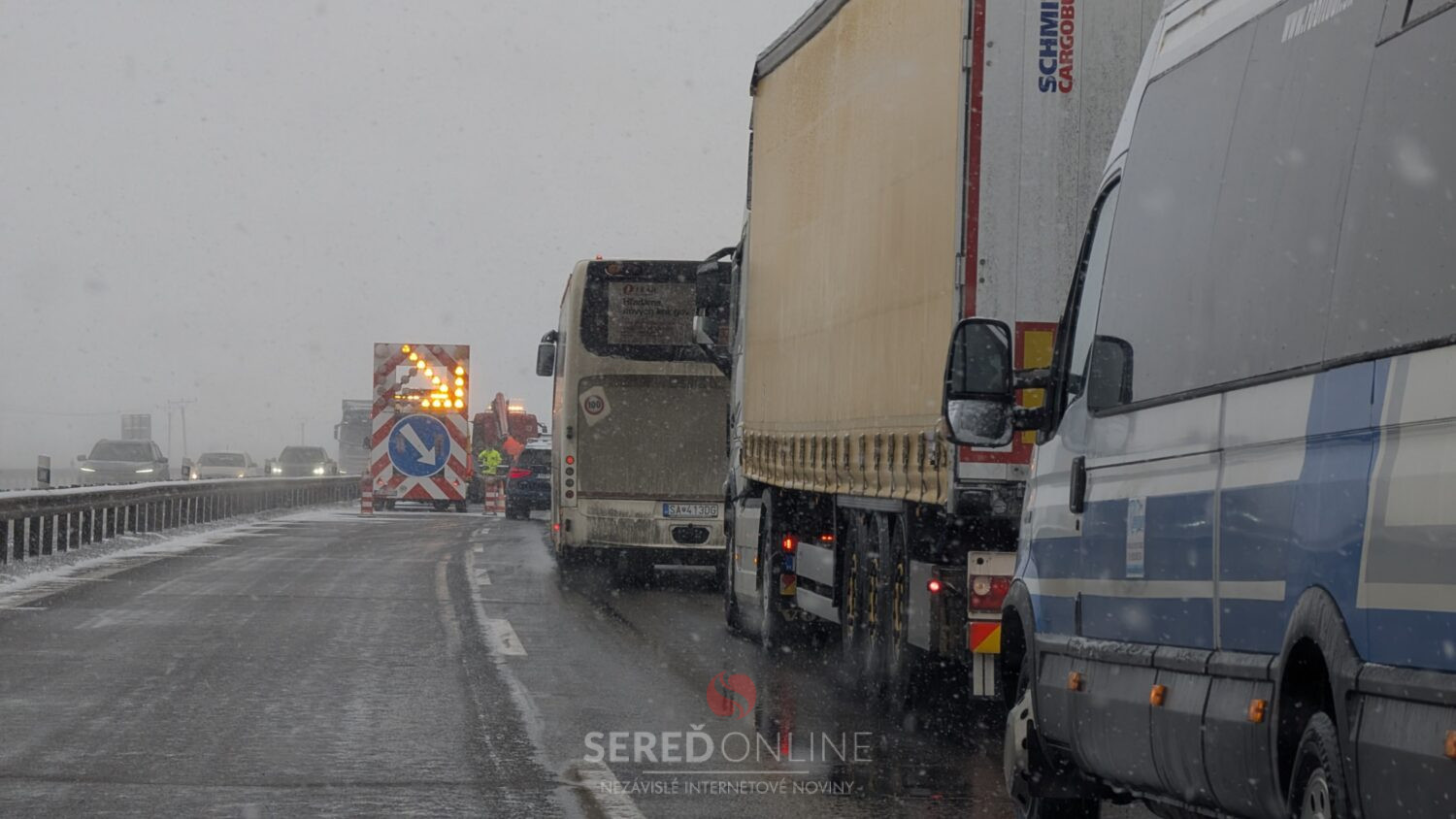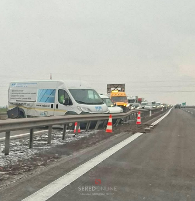 Na rýchlostnej komunikácii sa tvoria niekoľkokilometrové kolóny siahajúce až po nadjazd ponad R1 pri Dolnej Strede.