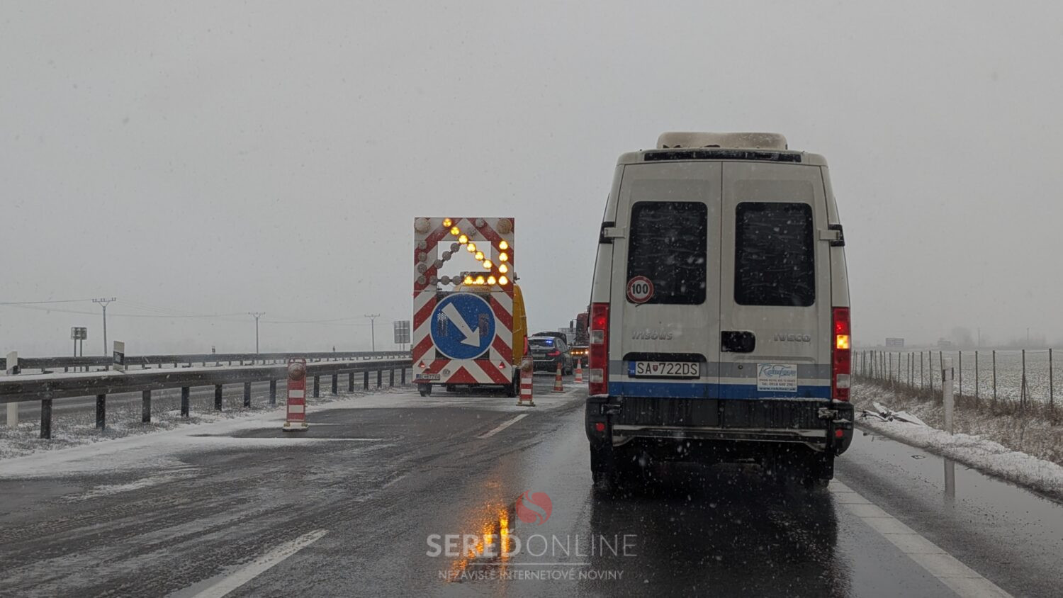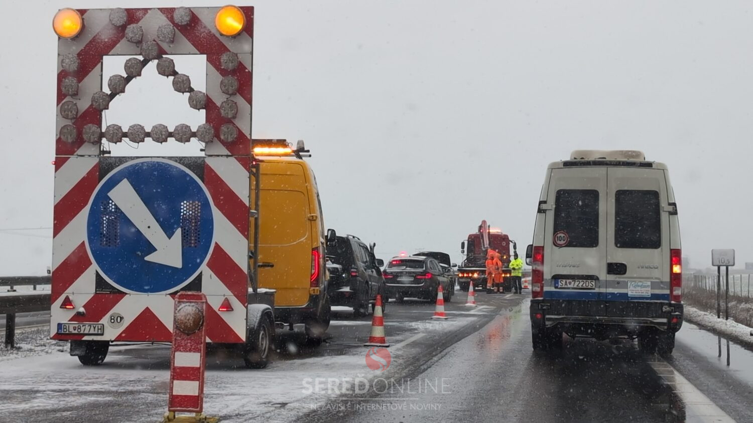 Práve v týchto chvíľach zasahujú záchranné a policajné zložky pri dopravnej nehode na rýchlostnej komunikácii R1 pri Seredi.