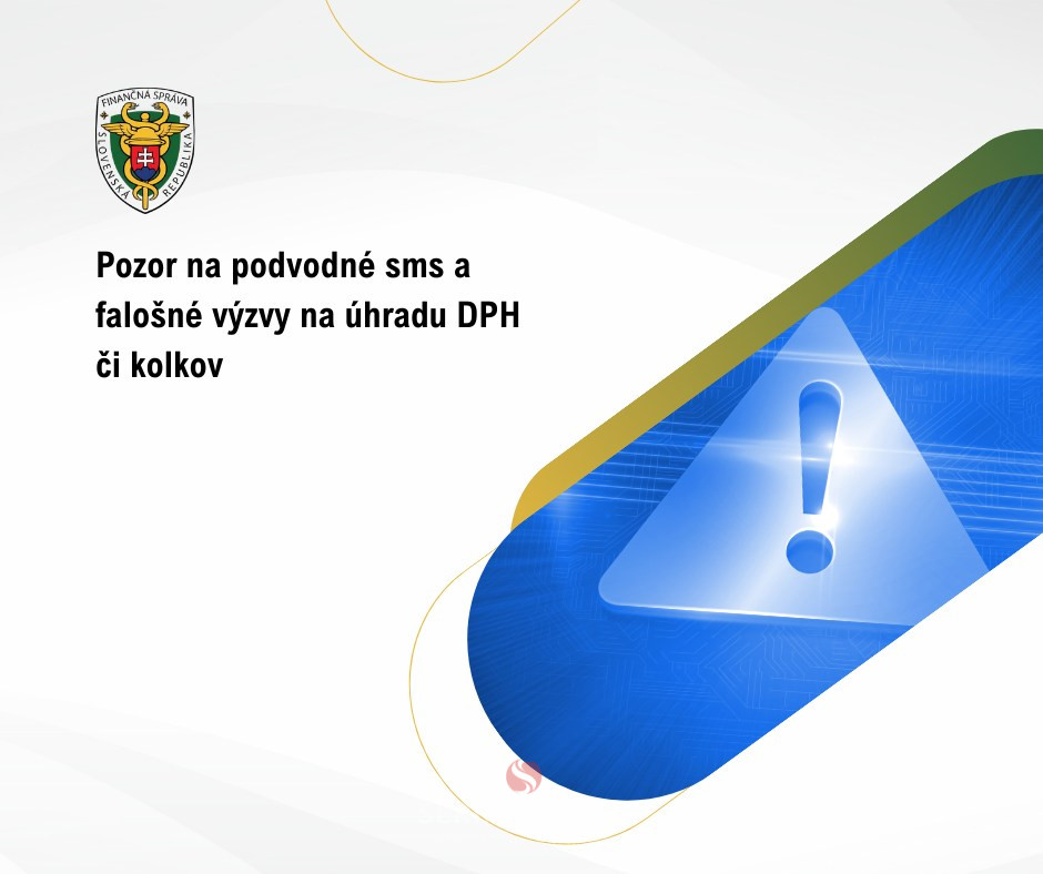 FS SR |MM| Finančná správa upozorňuje verejnosť na sofistikované podvodné aktivity, ktoré sa v týchto dňoch šíria prostredníctvom SMS správ, e-mailov a falošných dokumentov. Neznáme osoby sa v nich vydávajú za finančnú správu, „Slovenský daňový úrad“ či dokonca medzinárodné organizácie a vyzývajú na úhradu údajného nedoplatku na DPH alebo inej daňovej povinnosti.