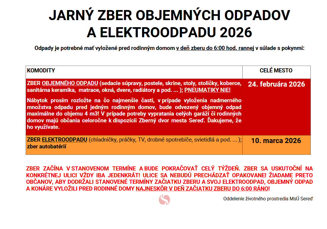 Mesto Sereď | Odpady je potrebné mať vyložené pred rodinným domom v deň zberu do 6:00 hod. rannej v súlade s pokynmi.