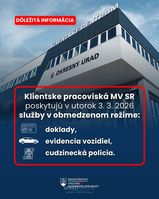 V utorok 3. marca 2026 preto klientske centrá, oddelenia dokladov PZ a oddelenia cudzineckej polície nebudú poskytovať služby na týchto úsekoch.