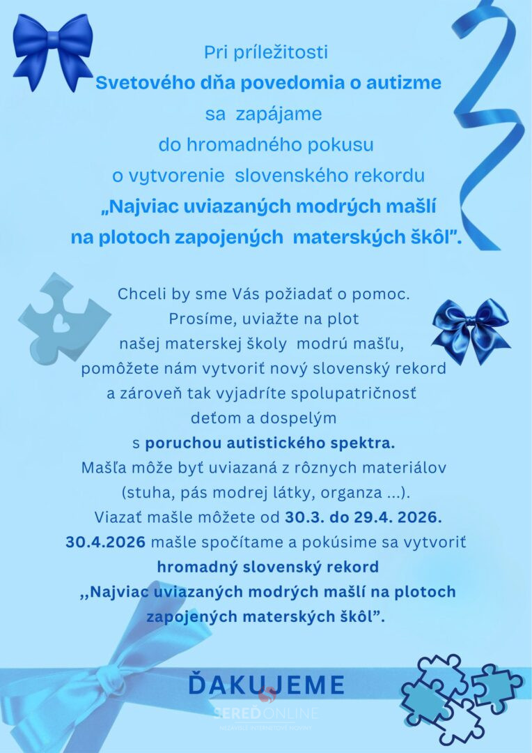 Pridajte sa aj vy – uviažte modrú mašľu. Spoločne môžeme vytvoriť nielen rekord, ale aj silný odkaz o ľudskosti a tolerancii.