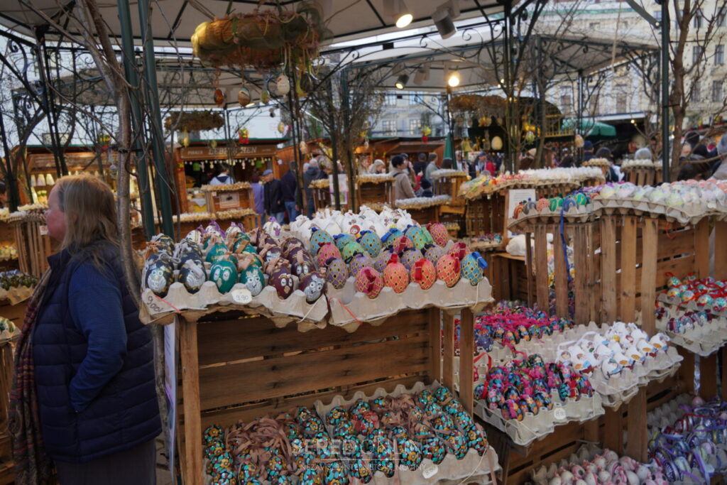 Ďalšou obľúbenou lokalitou bolo námestie Freyung, kde trhy trvali do 6. apríla. Trhy tam boli síce menšie, no rovnako krásne a plné ručne maľovaných veľkonočných vajíčok. Jednotlivé stánky si boli podobné, no celý areál bol obohatený o veľké točiace sa maľované vajce, ktoré dotváralo atmosféru.