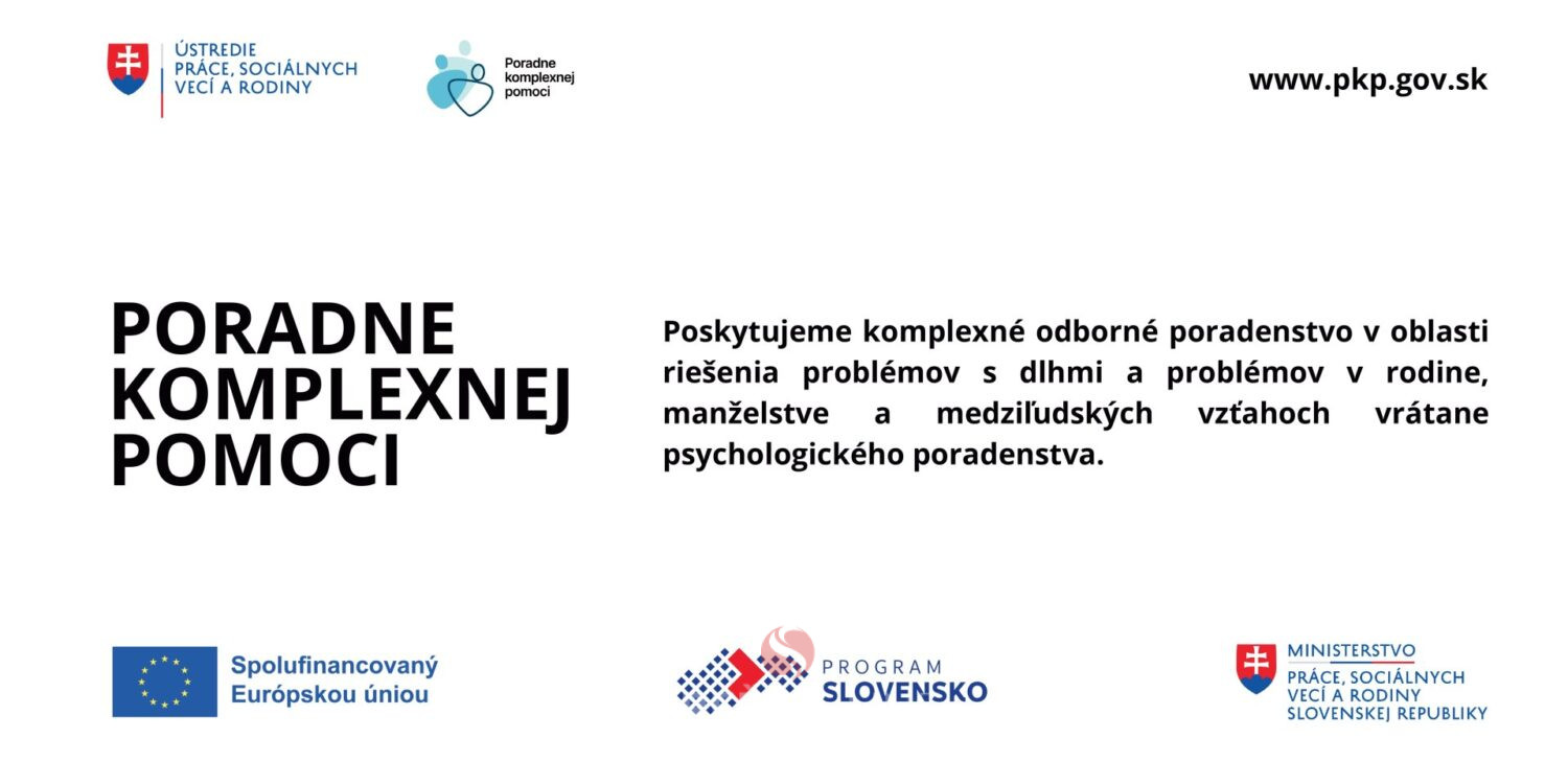 Mestský úrad | Ak sa ocitnete v náročnej životnej situácii, trápi vás zadlženie, problémy v rodine či vzťahoch alebo potrebujete právnu radu, k dispozícii vám je Poradňa komplexnej pomoci. Odborné a bezplatné poradenstvo vám poskytnú skúsený právnik a psychológ.
