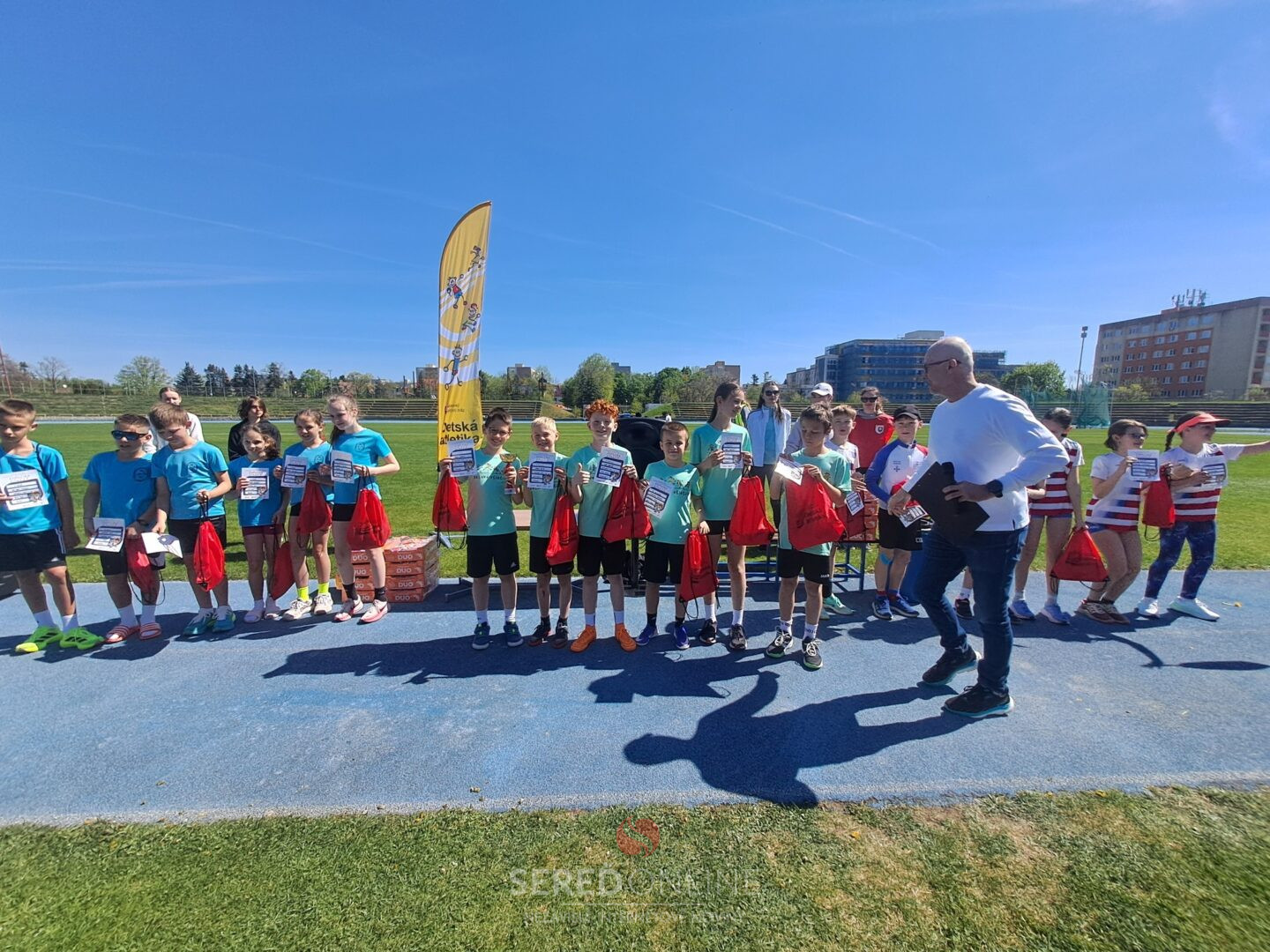 ZŠ Juraja Fándlyho Sereď | Naši žiaci opäť potvrdili, že odhodlanie, tímová spolupráca a radosť zo športu prinášajú výnimočné výsledky. V krajskom kole atletickej súťaže Detská P-T-S reprezentovali našu školu dva šesťčlenné tímy.