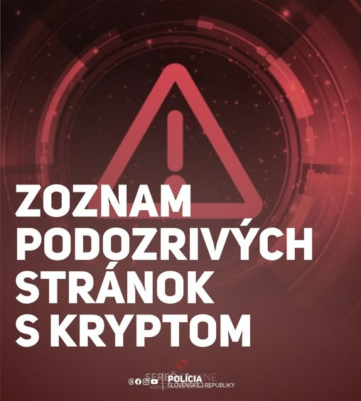 Prezídium PZ SR |MM| Národná banka Slovenska upozorňuje verejnosť na viaceré webové stránky, ktoré ponúkajú investovanie do kryptoaktív alebo služby s nimi spojené.