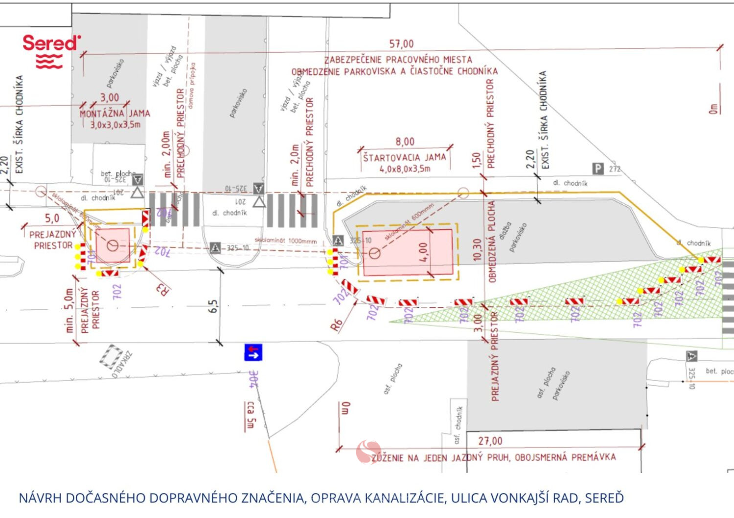 Mesto Sereď | Od pondelka 27. apríla 2026 sa začnú na ulici Vonkajší rad pri Srdiečkových bytoch práce súvisiace s opravou kanalizačného zberača. Dôvodom je havarijný stav kanalizácie v tejto lokalite.